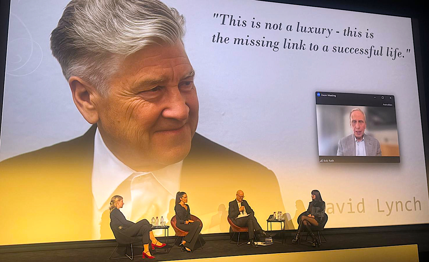 Bob Roth, one of the most experienced teachers of Transcendental Meditation, masterfully clarified the uniqueness of TM, its mechanics and benefits, and also shared aspects of his long friendship with David Lynch; Bianca Keyman emphasized the importance of a tool such as TM in our chaotic world, and how it should really be made available to the children, the politicians, and all wanting to overcome stress. The event also included two short video clips: David Lynch explaining the value of transcending, and filmmaker Martin Scorsese and legendary investor Ray Dalio discussing the benefits of their TM practice.